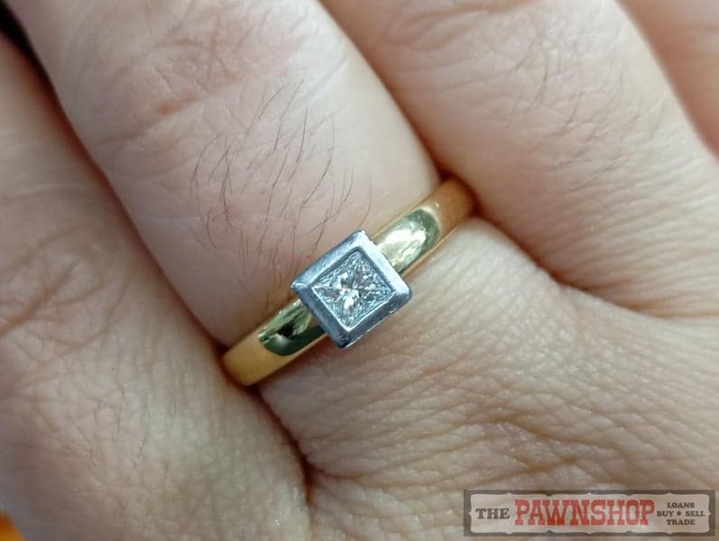 On offer here is a 18ct Yellow Gold Rub Over Set Princess Cut Diamond Solitaire Ring