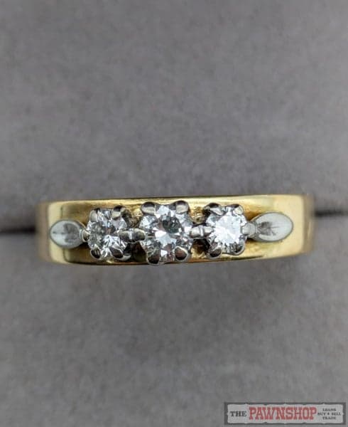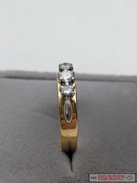 On offer here is a 18ct Yellow Gold Three Stone Diamond Ring