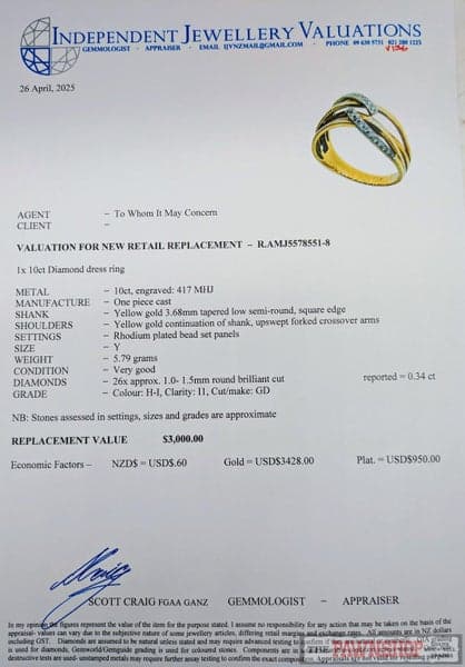 Yes, all our rings come with the pictured valuations.
