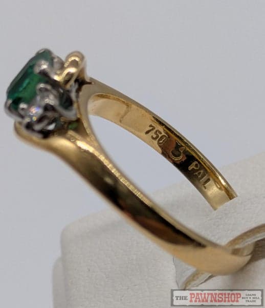 On offer here is a 18ct Yellow Gold and Palladium Emerald and Diamond Ring