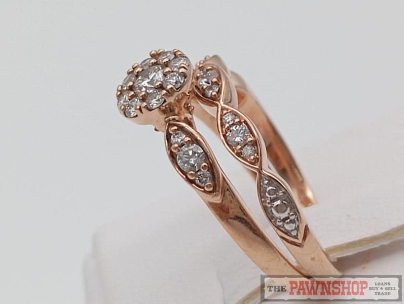 On offer here is a 10ct Rose Gold Diamond Bridal Ring Set With 24x Diamonds.