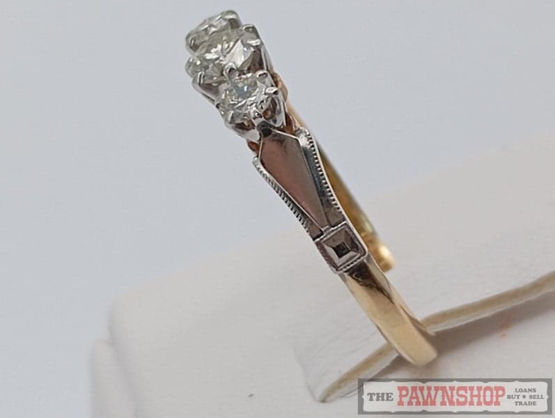 On offer here is a 18ct Yellow Gold and Platinum Three Stone Diamond Ring