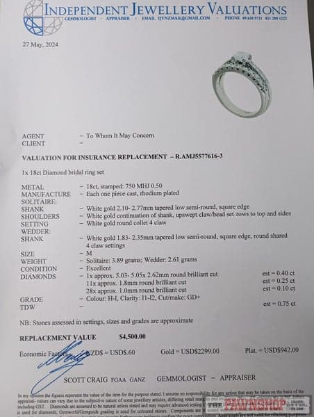 Yes, all our rings come with the pictured valuations.