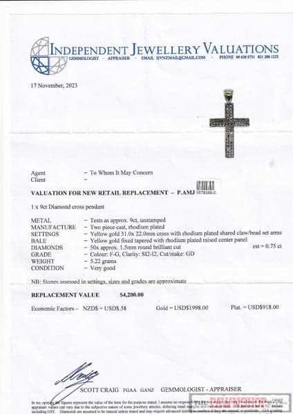 On offer here is a 9CT Yellow Gold Diamond Cross Pendant