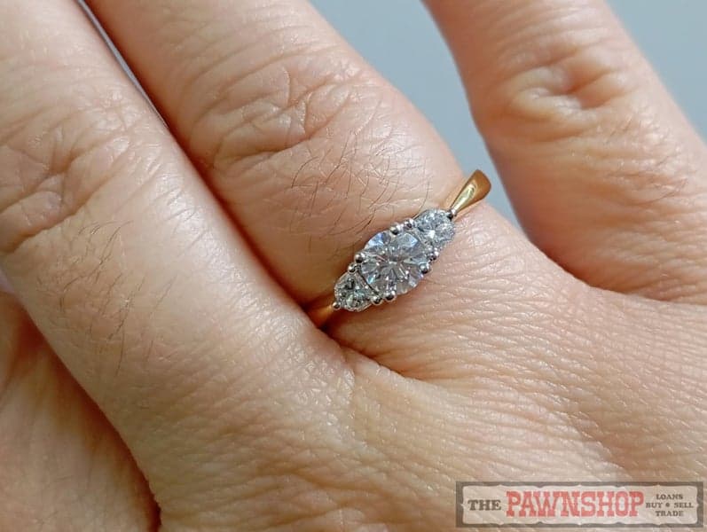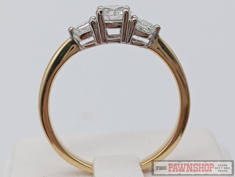 On offer here is a 18ct Yellow Gold Three Stone Diamond Ring.