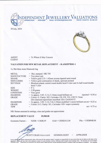 0.75ct TDW Three Stone Diamond Ring in 18ct Yellow Gold $9,900