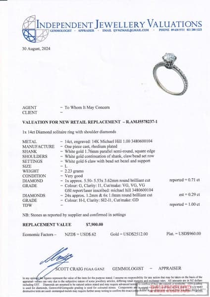 Yes, all our rings come with the pictured valuations.