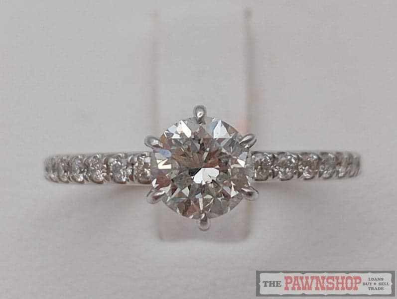 On offer here is a 14ct White Gold Diamond Solitaire Ring with shoulder diamonds