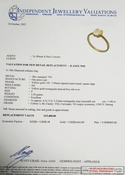 Total weight of diamond 1x = 1.00ct estimated.