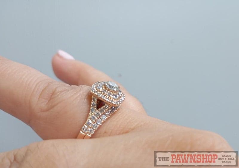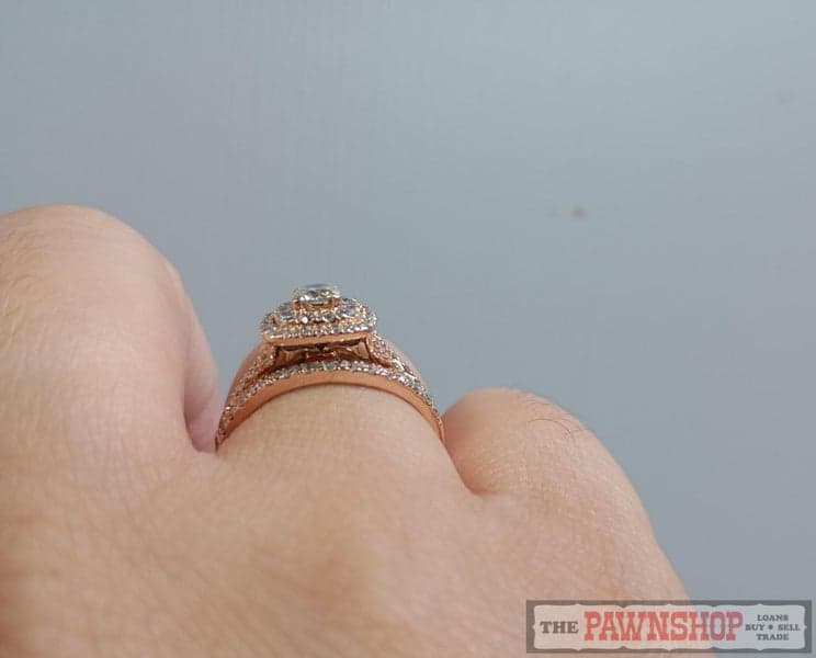 On offer here is an 14ct Rose Gold Diamond Bridal Ring Set.