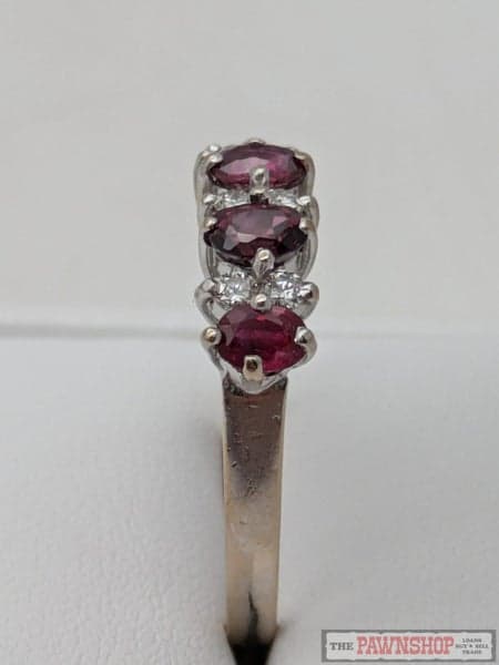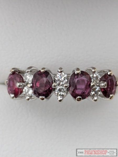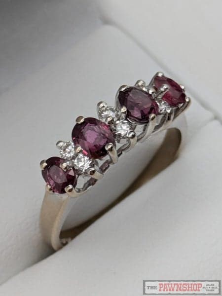 On offer here is a 18ct White Gold Rubies and Diamond Dress Ring