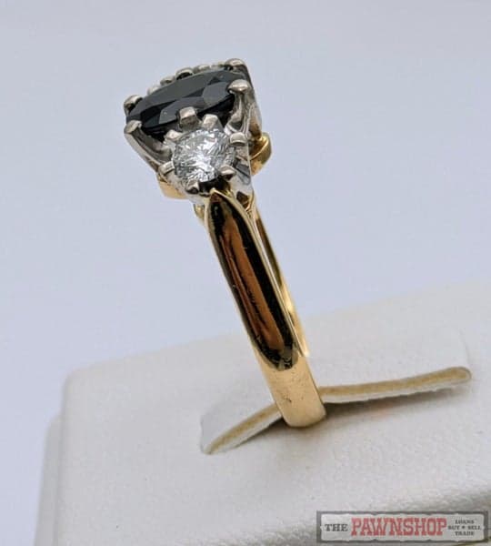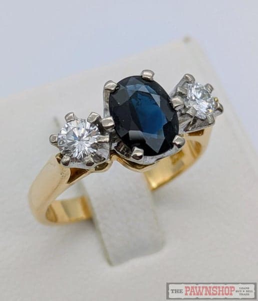 On offer here is a Handmade and Production components 18ct Yellow Gold Sapphire and Diamond Three Stone Ring