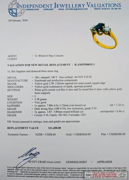 Sapphire = 1.25ct approx. 7.88x 6.0x 3.12mm oval mixed cut