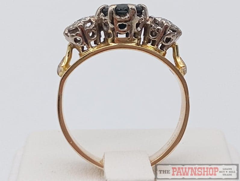On offer here is a 18ct Yellow Gold Sapphire and Diamond Dress Ring