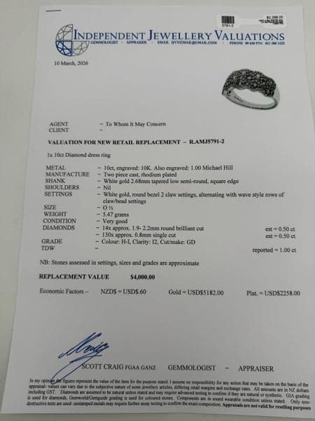 10ct White Gold 1.0ct TDW Diamond Dress Ring ~ $4,000!