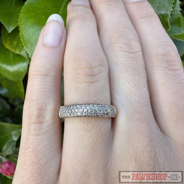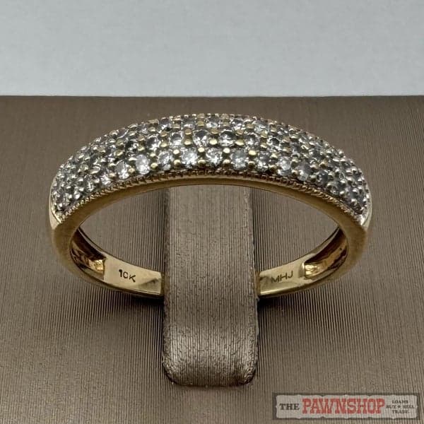 On offer here is a 10ct Yellow Gold Diamond Cluster Band Ring.