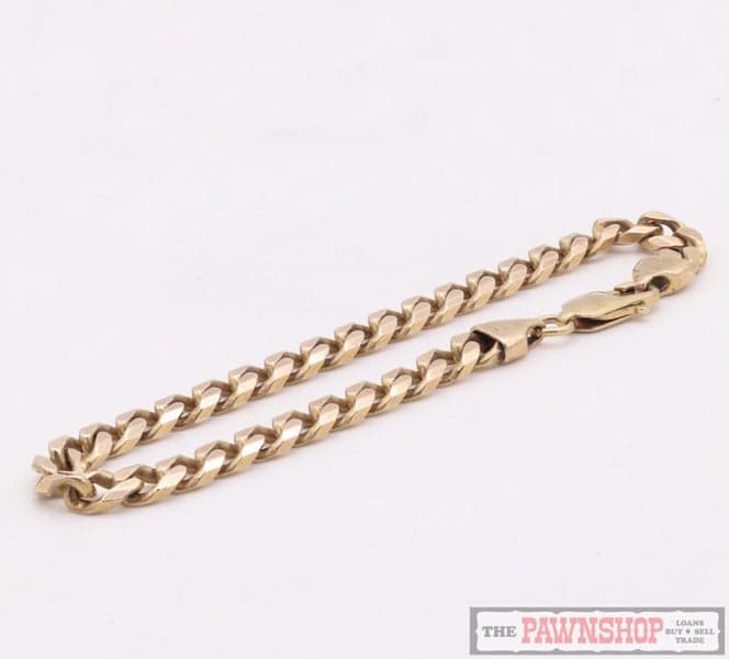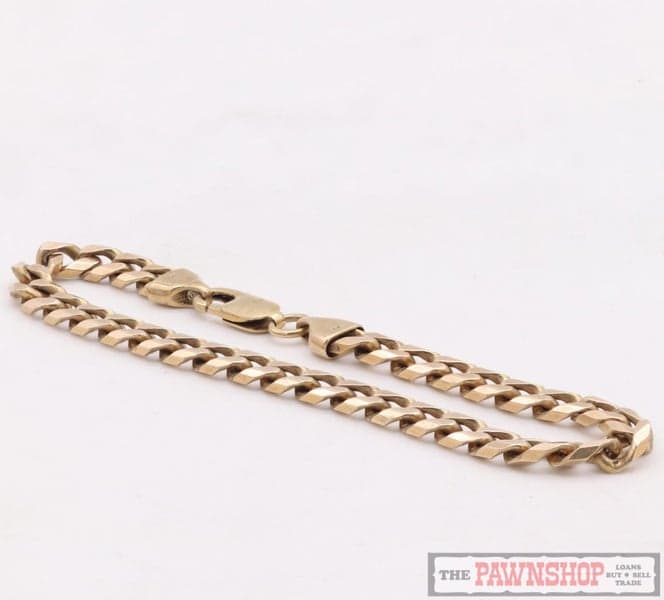 On offer here we 10ct Yellow Gold Classic Men's Curb Link Bracelet 23cm 6.2mm Wide Links, with a weight of 22.50 grams.