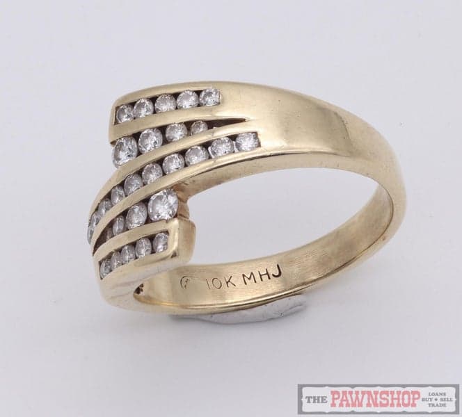 On offer here we have this gorgeous 9ct Yellow Gold Diamond Crossover dress ring.