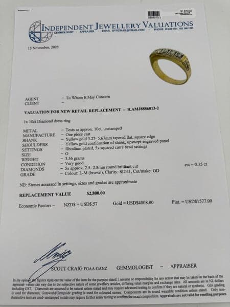 Replacement Value: $2,800 NZD