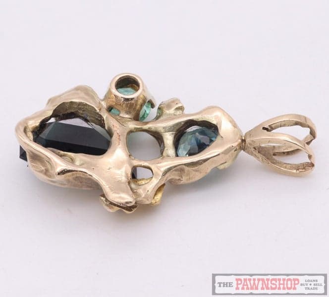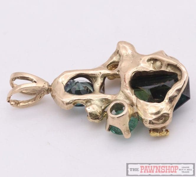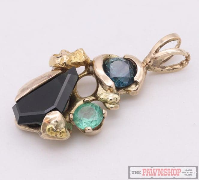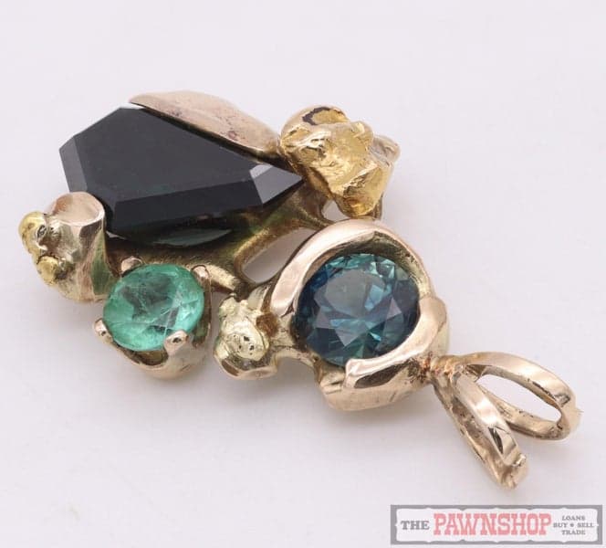 10ct Yellow Gold Nugget and Multi Stone Sapphire and Emerald Pendant ~ $7,000