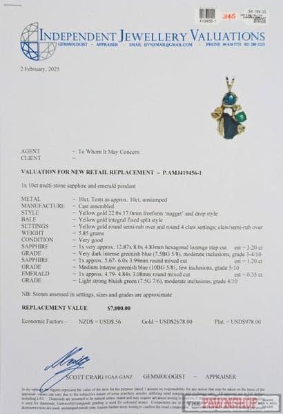 On offer here we have this unique 10ct yellow gold multi stone sapphire and diamond pendant, with a replacement value of $7,000.