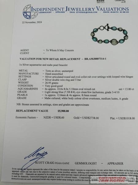 Replacement Value: $5,900 NZD