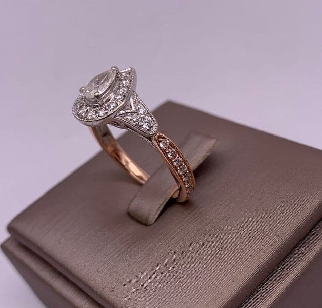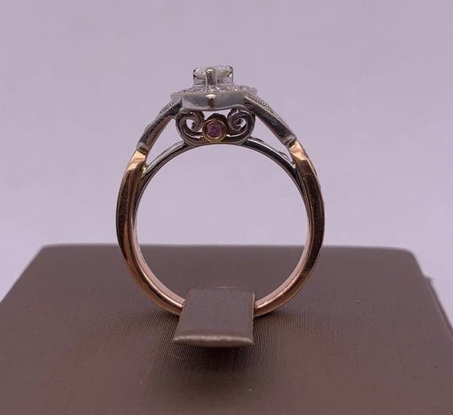 On offer here is a 14ct Rose Gold Diamond Pear Cluster Ring with Pink Sapphires.
