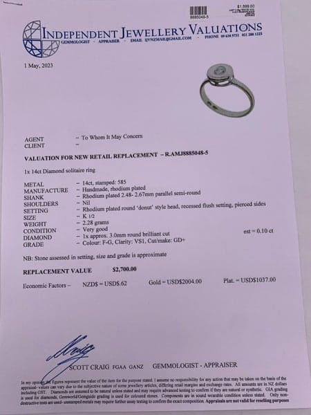 14ct White Gold 0.10ct Diamond Solitaire Ring ~ $2,700!