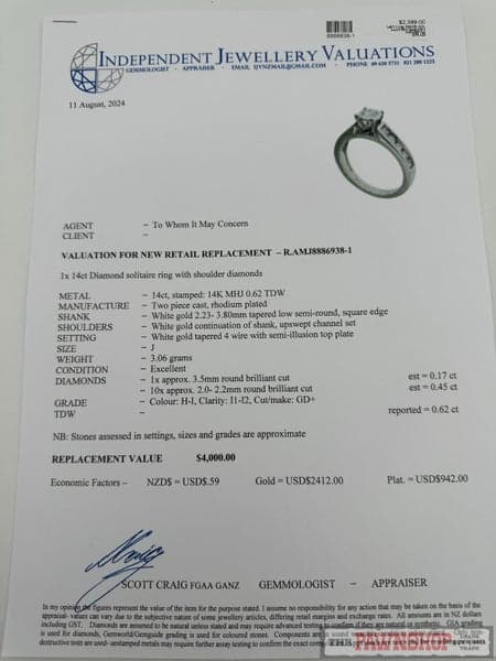 14ct White Gold 0.62ct TDW Diamond Solitaire Ring ~ $4,000!