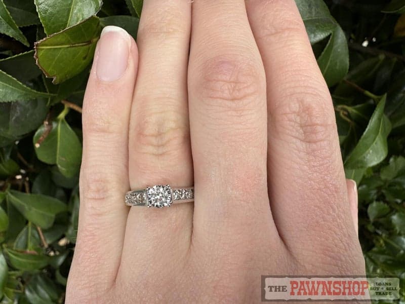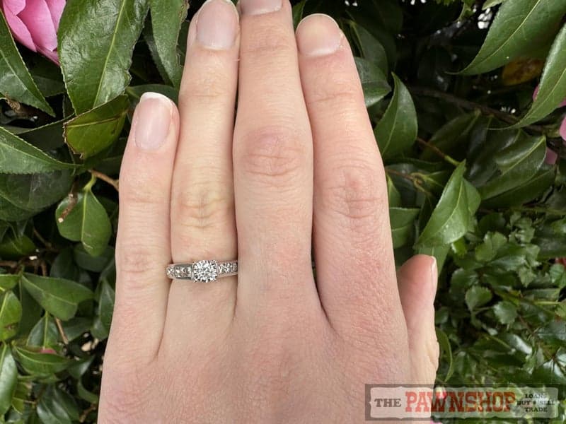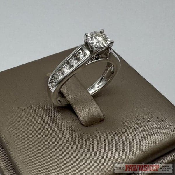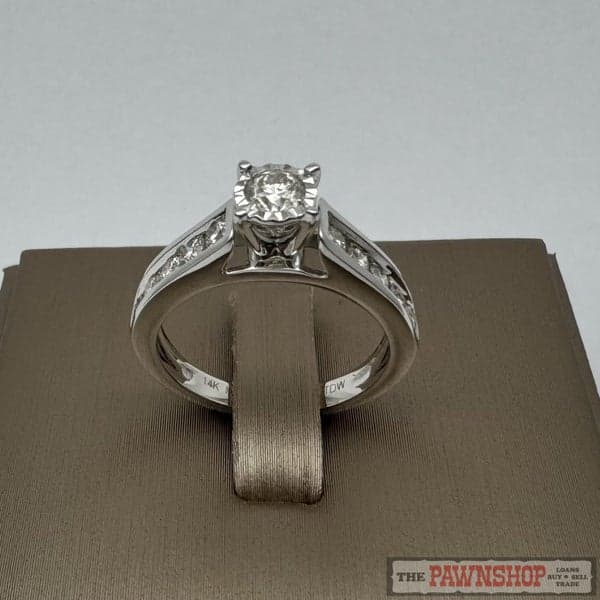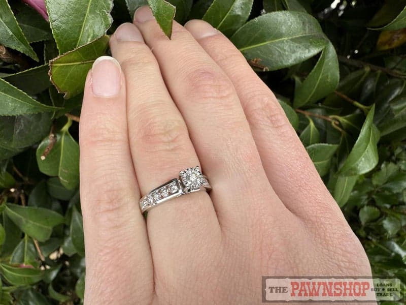 On offer here is an 14ct White Gold Diamond Solitaire Ring with Shoulder Diamonds.