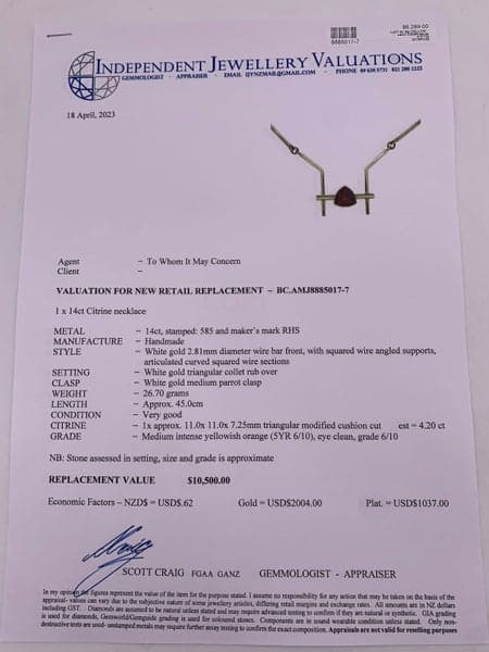 14ct White Gold 4.20ct Citrine Necklace ~ $10,500!