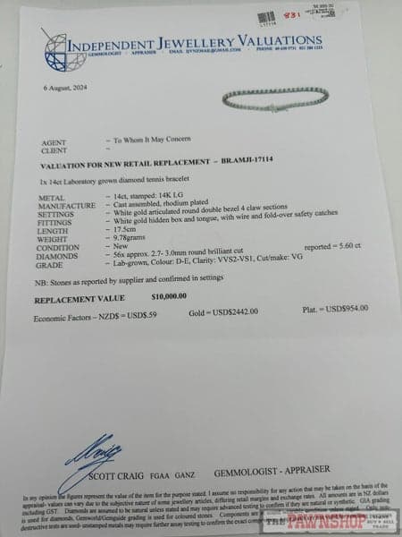 Replacement Value: $10,000 NZD