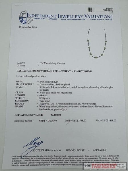 Replacement Value: $6,000 NZD