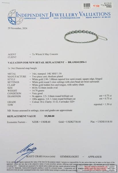 On offer here we have this beautiful 14ct White Gold Michael Hill Diamond Hinged Bangle 1.50ct TDW, valued at $9,300!