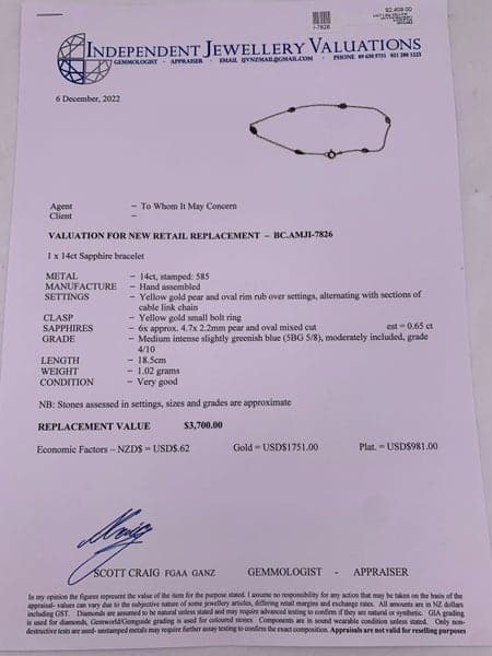 Replacement Value: $3,700 NZD