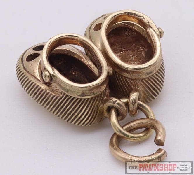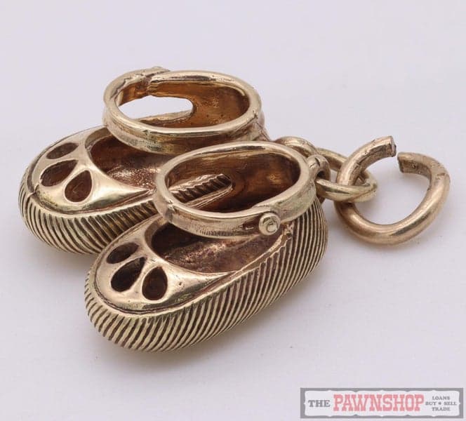 On offer here we have this 14ct yellow gold charm featuring a pair of baby shoes.