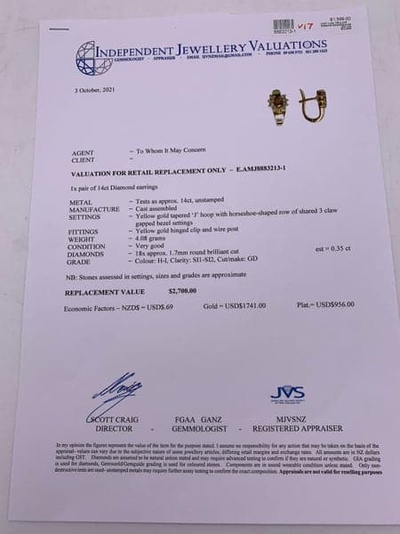 14ct Yellow Gold Diamond Horseshoe Hoop Earrings ~ $2,700!