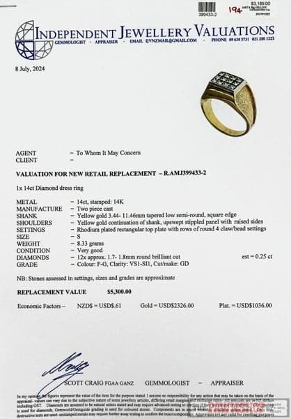 Replacement value $5,300