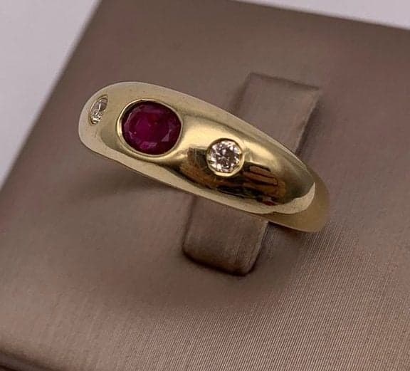 This beautiful gypsy ring features a central natural ruby with 2x diamonds either side.