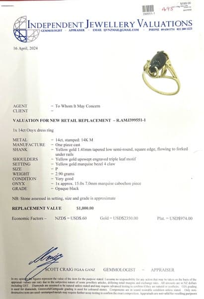 14ct Yellow Gold Onyx Dress Ring ~ $1,000!