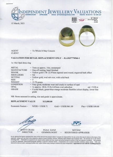 14ct Yellow Gold Opal Dress Ring - $13,000