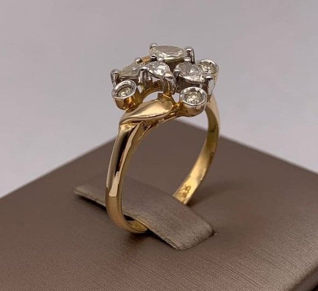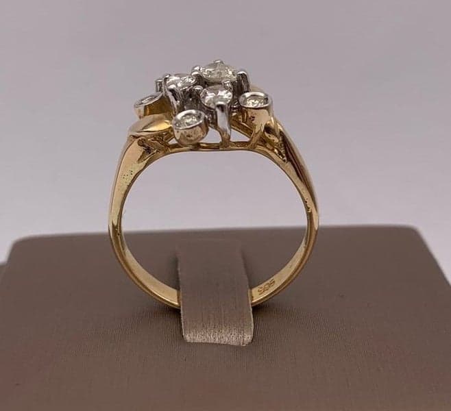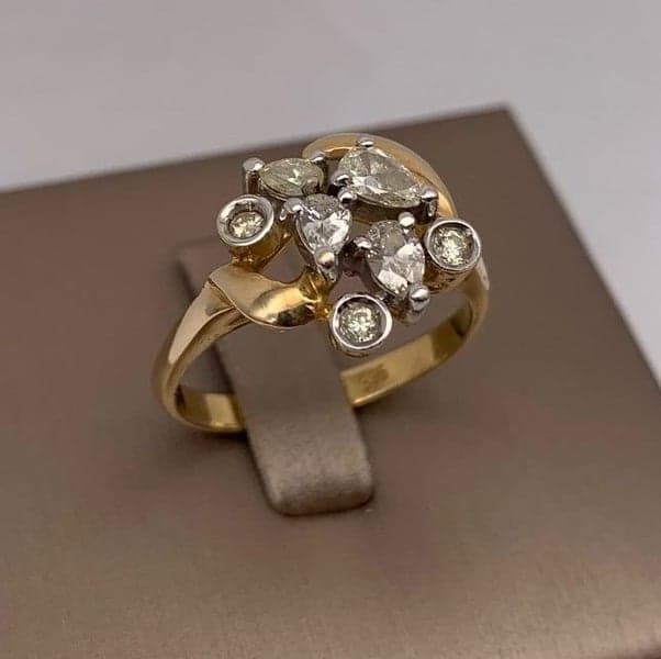 14ct Yellow Gold Pear & Round Brilliant Cut Diamond Dress Ring ~ $4,200!