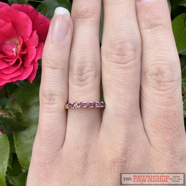 On offer here is a 14ct Yellow Gold Natural Ruby Band Ring