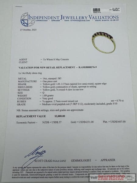 Replacement Value: $2,000 NZD
