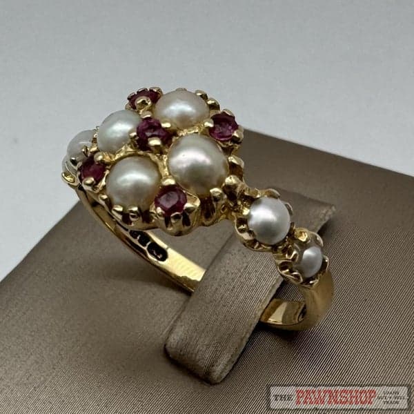 On offer here is a 14ct Yellow Gold Ruby & Pearl Dress Ring.