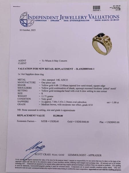 Replacement Value: $5,300 NZD