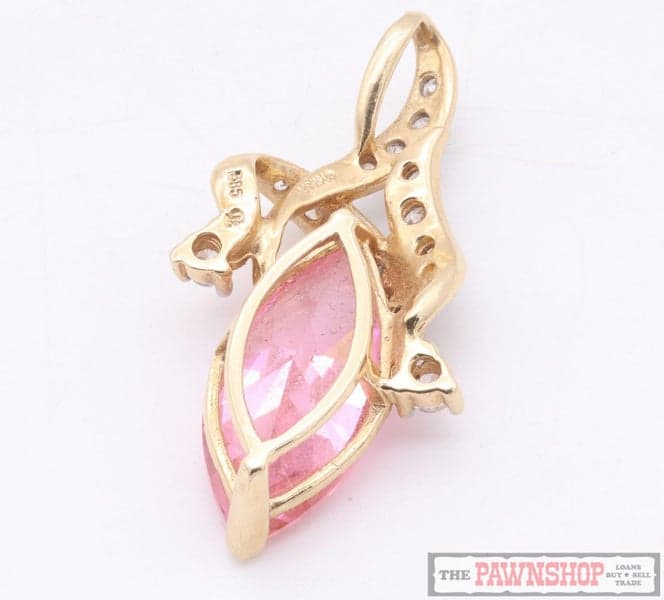14kt Yellow Gold Pink Stone and CZ Pendant