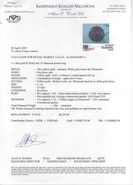 Total Ruby Weight = 5.0ct 'very approx.'