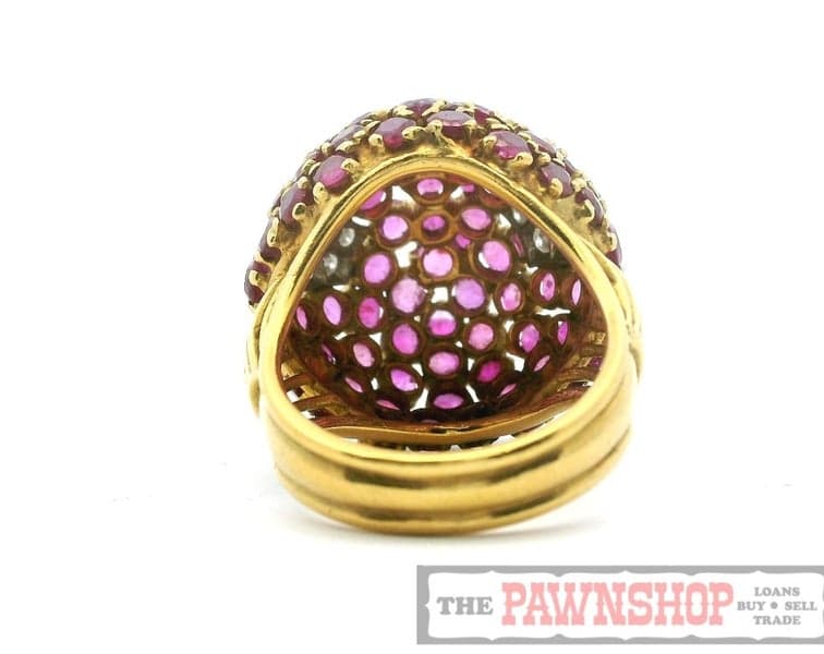On offer here is this eye-catching 18ct Gold Ruby and Diamond Domed Ring.