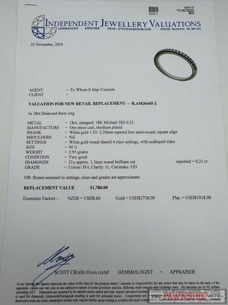 Stamped: 18K Michael Hill 0.21